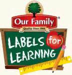 Labels for Learning: Our Family brand. Any Our Family UPC’s can be cut out and we can send them in. Each UPC is worth 5¢.